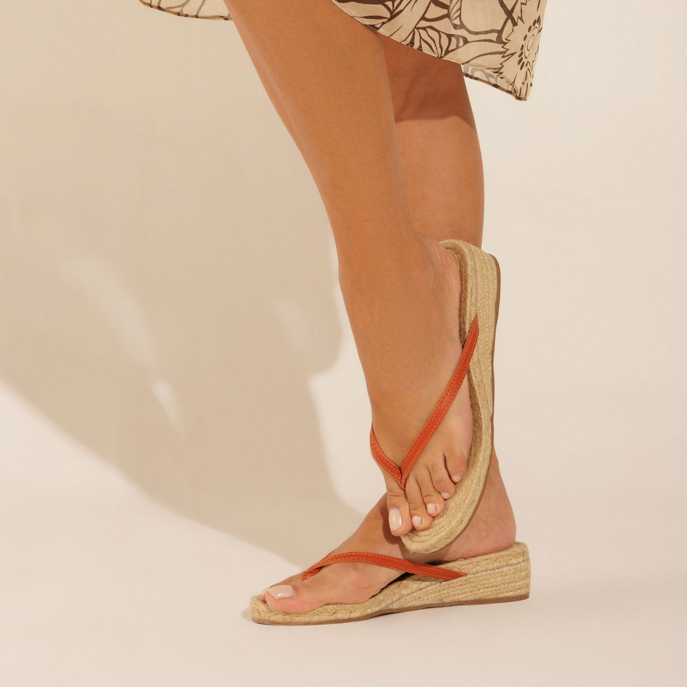 O tom tucumã vibrante e as tiras finas em couro legítimo certificado conferem um visual delicado e sofisticado. Seu design clean se adapta facilmente a diferentes estilos e ocasiões, tornando-se uma peça coringa no guarda-roupa. Seja para um passeio à beira-mar ou um encontro casual, enfim, a escolha certa para quem busca elegância casual descomplicada.