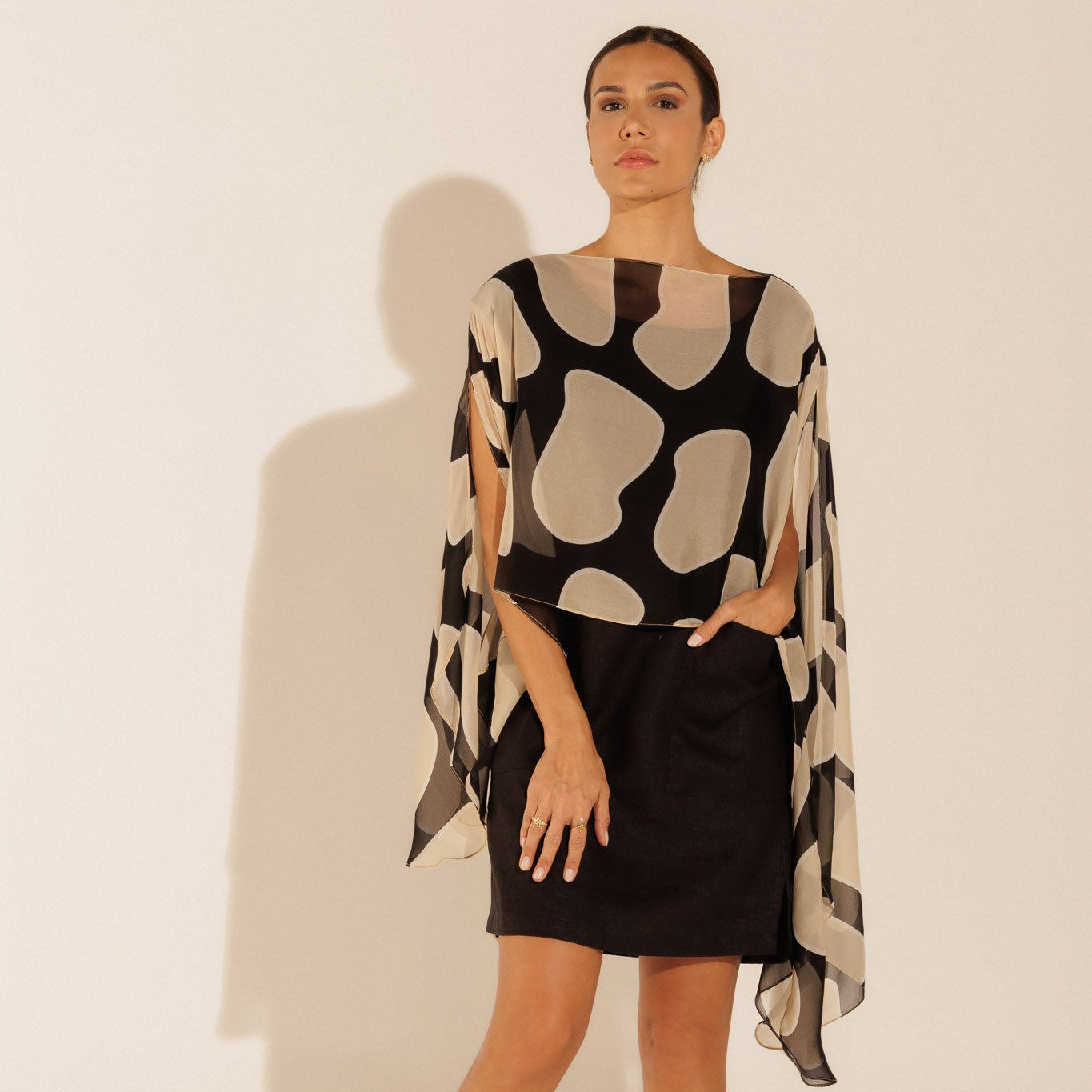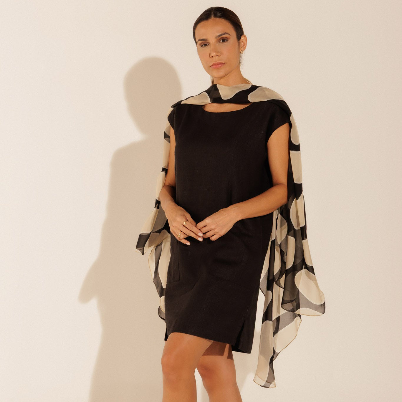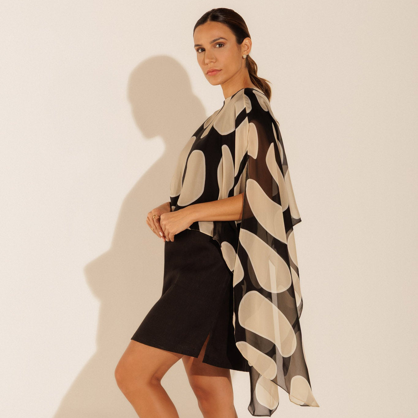 Sobre Lenço Pelerine França Formas Orgânicas Preta