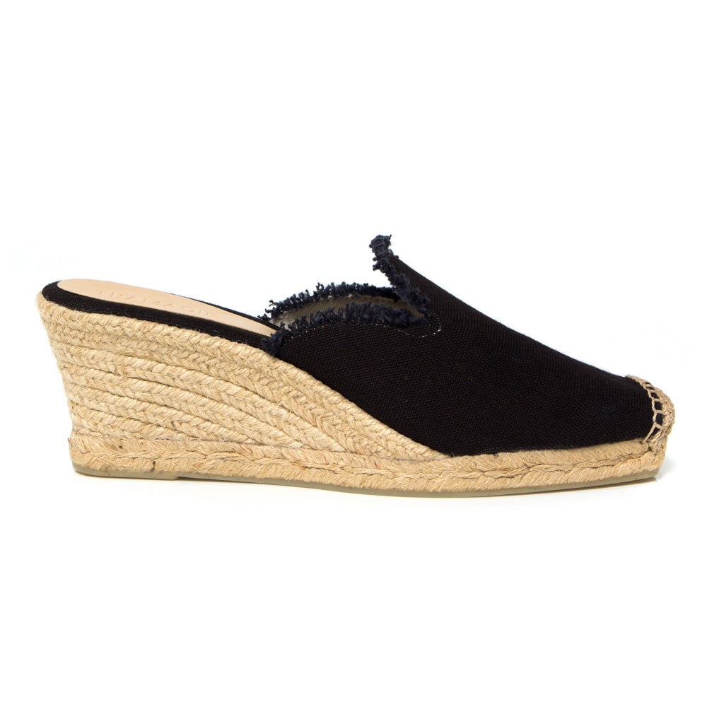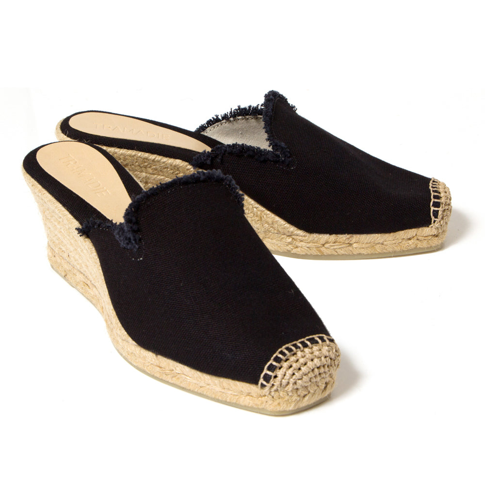 O design da Sandália Mule Plataforma Preta é marcado por sua simplicidade sofisticada. O detalhe desfiado é um toque carinhoso que adiciona personalidade a espadrille.